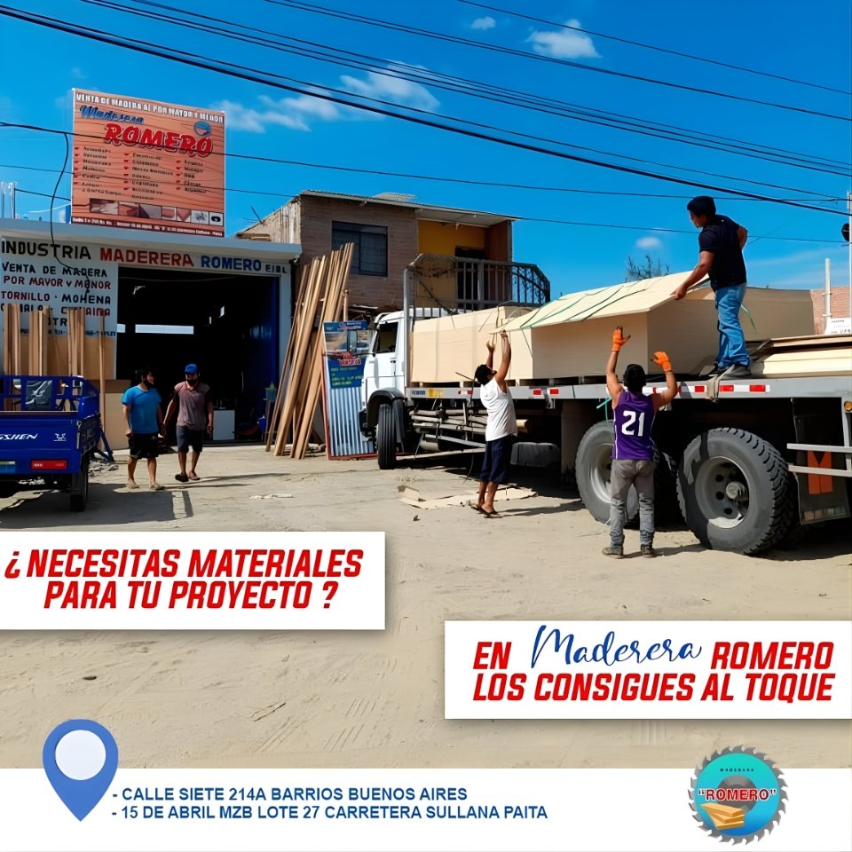 En Maderera Romero, trabajamos con compromiso y responsabilidad para brindar materiales de calidad que impulsen cada proyecto de construcción y carpintería en Sullana y alrededores. Nos especializamos en la venta al por mayor y menor de madera, triplay fenólico, OSB y otros insumos esenciales para obras y acabados.